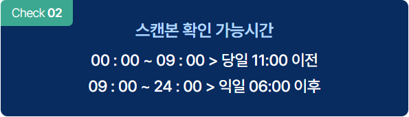 위 표를 참조하시면 시간별 스캔본 확인 가능시간을 확인할 수 있습니다.