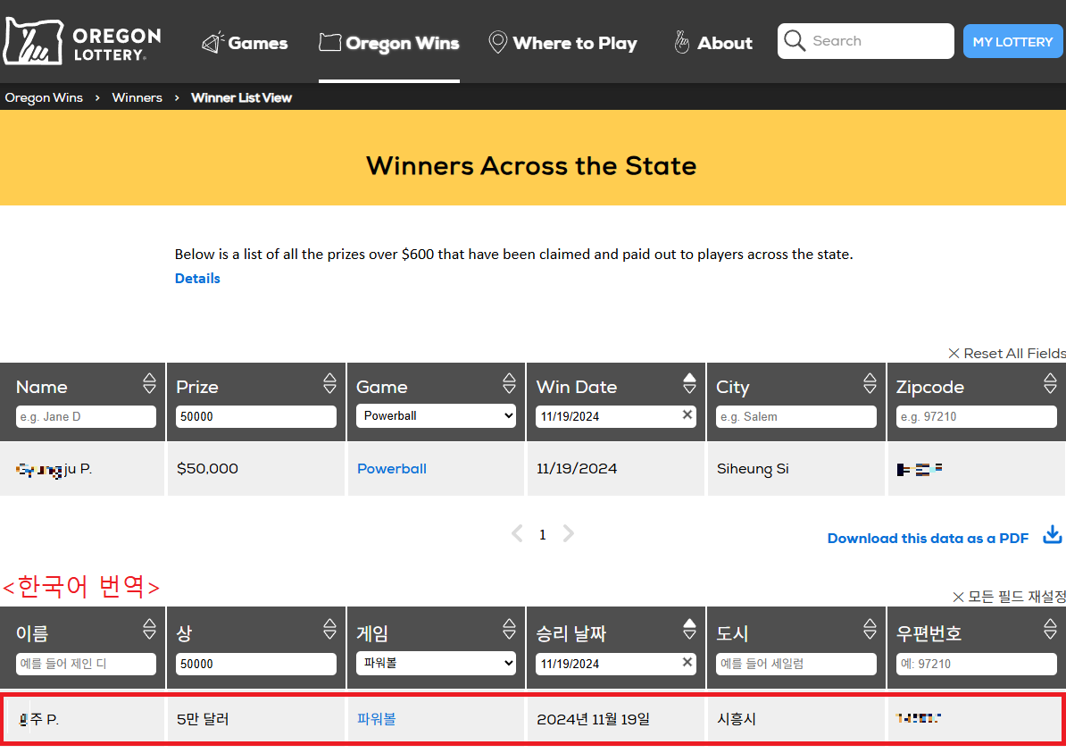 2024년 11월 19일 (오리건주 복권국 수령일 기준)